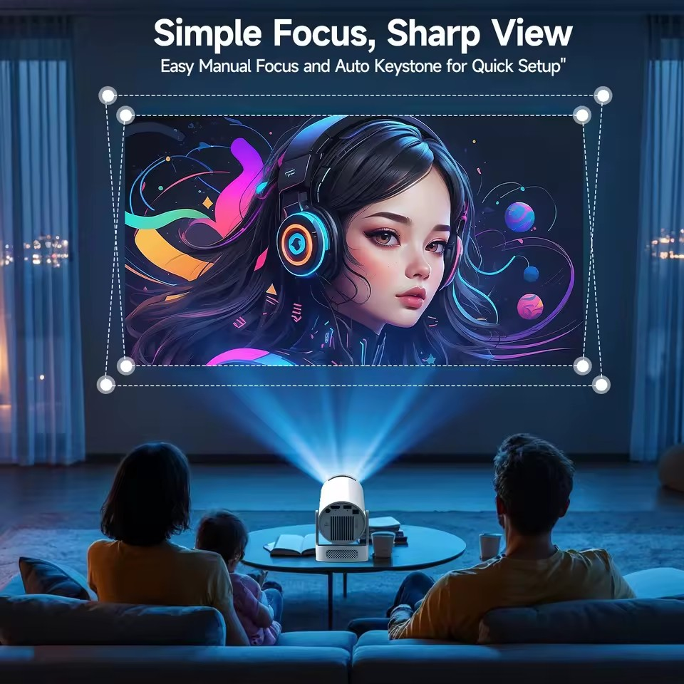 O Projetor 4K HD Android 11 oferece resolução nativa Full HD 1080p com suporte a 4K UHD, garantindo cores vibrantes, alto contraste e nitidez surpreendente. Filmes, séries, jogos e apresentações ganham vida em telas de até 200 polegadas!